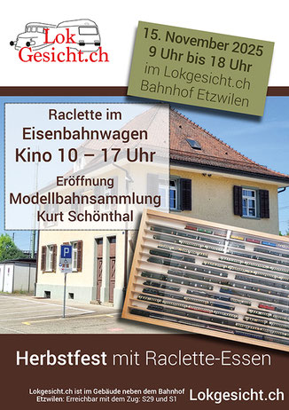 Lokgesicht.ch, das private Zentrum der schweizerischen Eisenbahn. Es beherbergt eine grosse Bibliothek über das Zeitgeschehen der Schweizer Eisenbahn und Bahnbau.